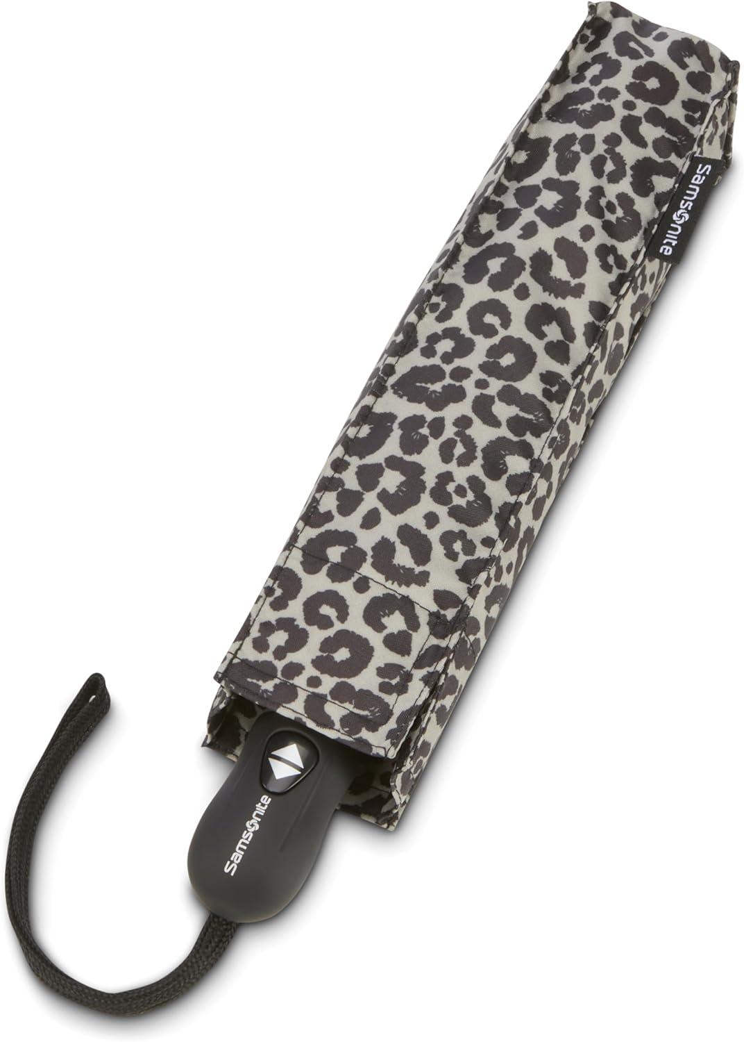 Samsonite Compact Auto Open/Close Umbrella, One Size, Grey/Black Cheetah