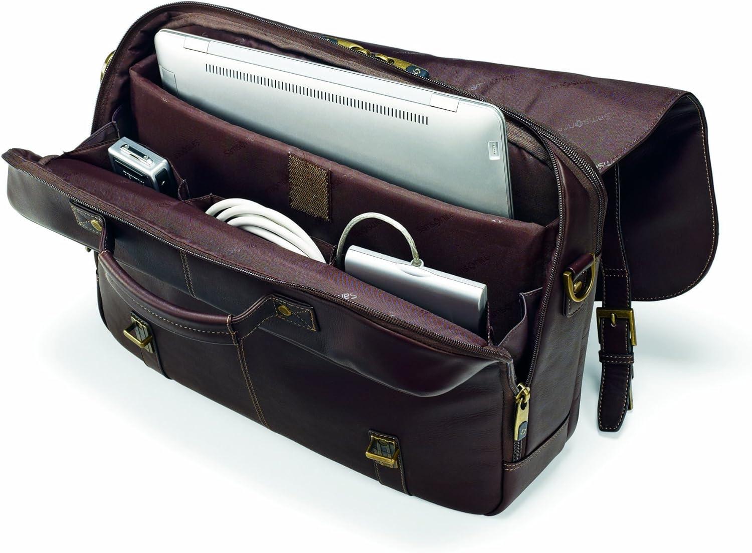 Samsonite Colombian Leather Flap-Over Messenger Bag, Brown, One Size(Brown)