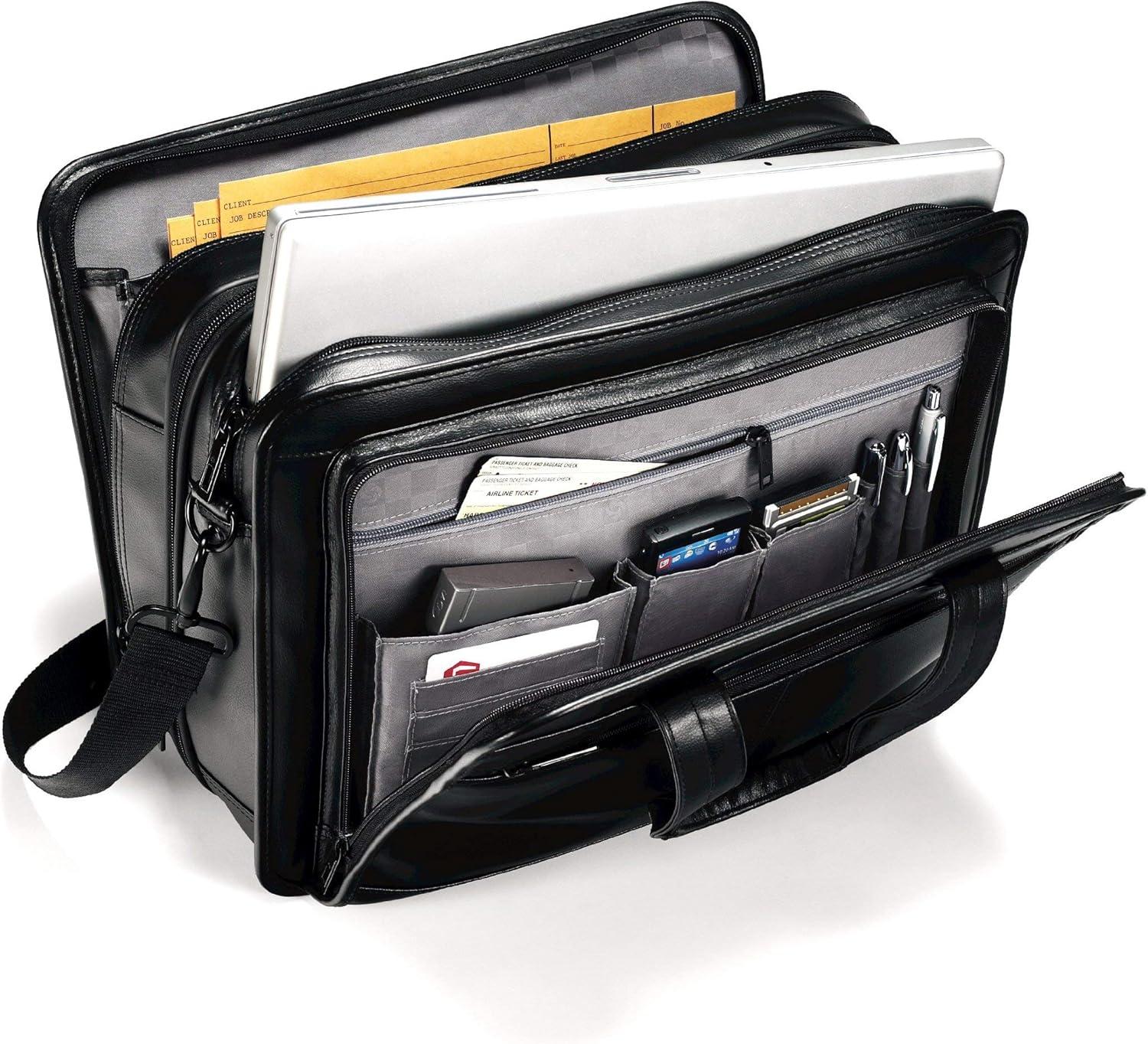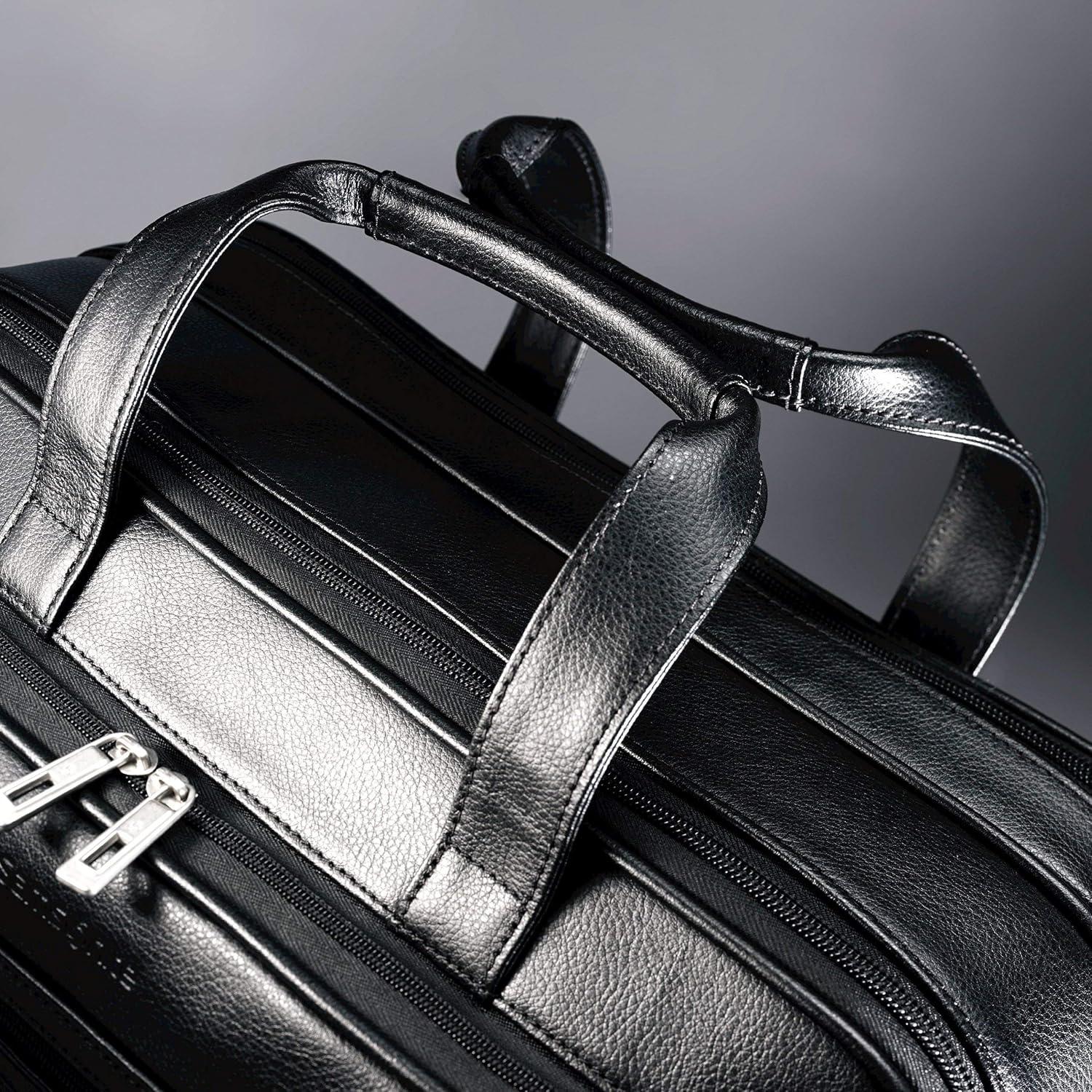 Samsonite Leather Expandable Briefcase, Black, One Size(Black)