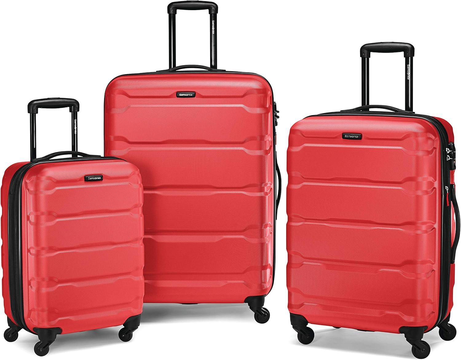 Samsonite Omni PC Hardside Expandable Luggage with Spinner Wheels, Checked-Large 28-Inch, White(Red)