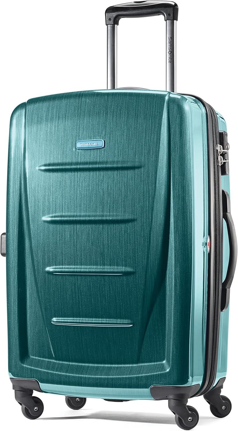 Samsonite Winfield 2 Hardside Expandable Luggage with Spinner Wheels, Checked-Large 28-Inch, Brushed White(Teal)