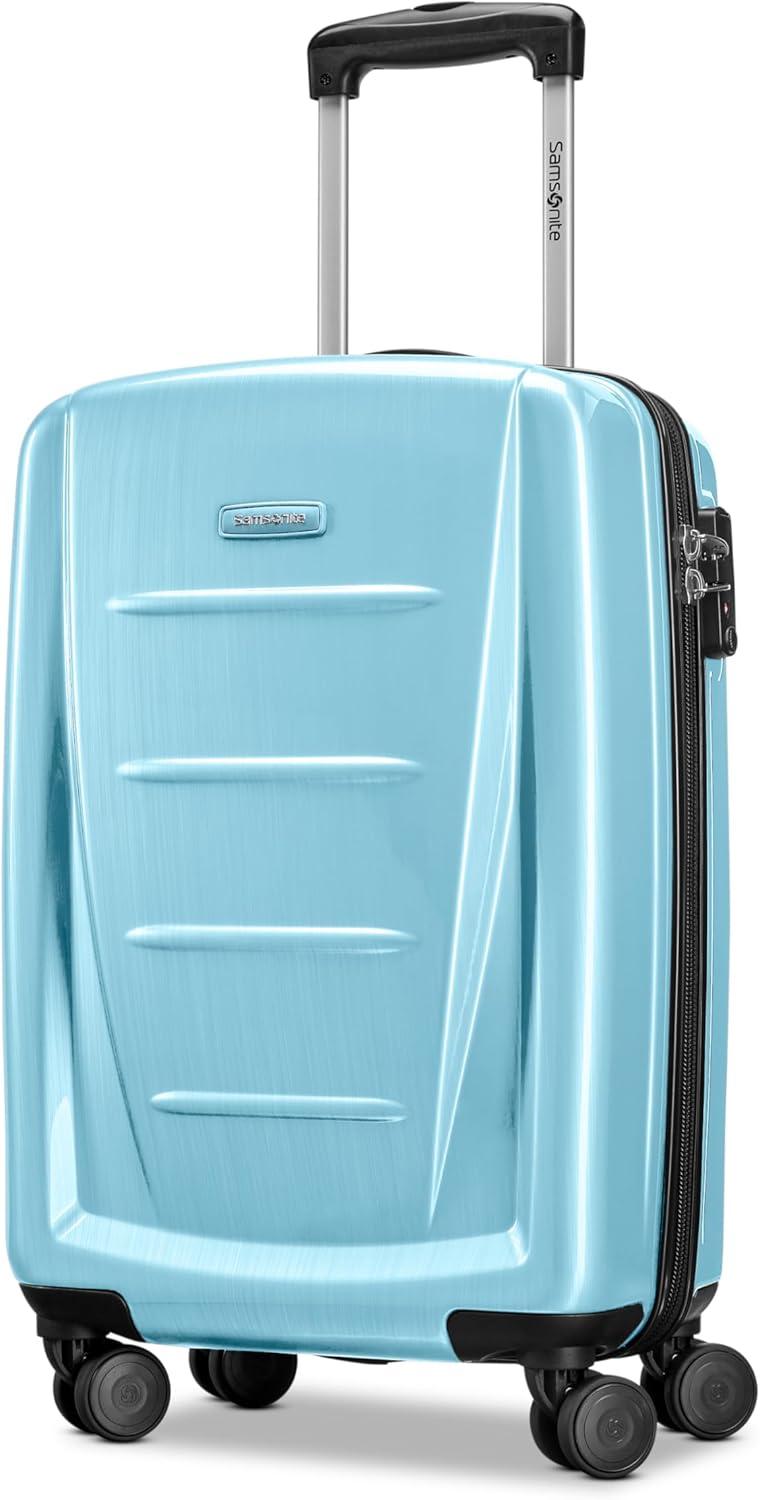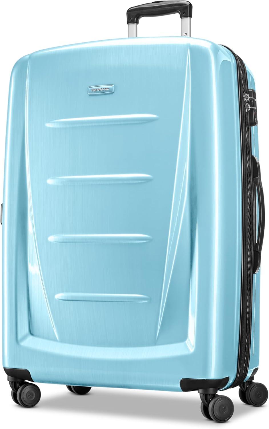 Samsonite Winfield 2 Hardside Expandable Luggage with Spinner Wheels, Checked-Large 28-Inch, Brushed White(Ice Blue)