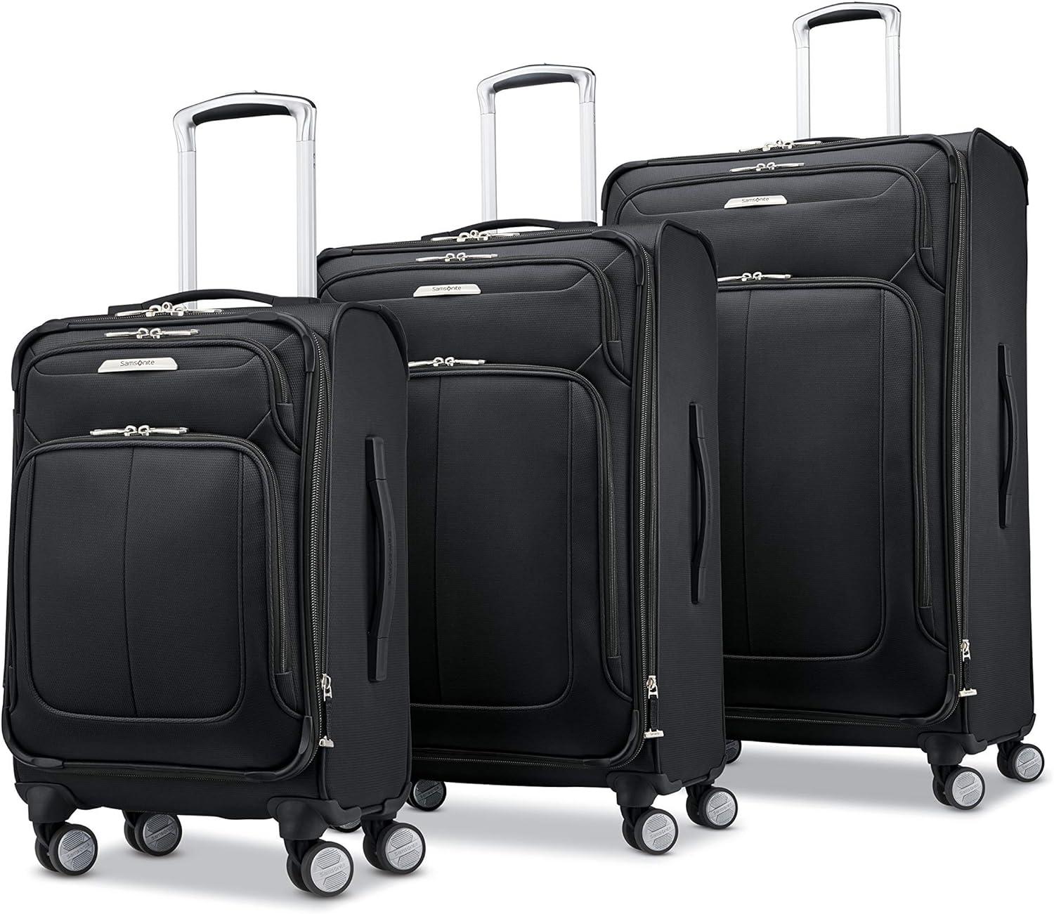 Samsonite Solyte DLX Softside Expandable Luggage with Spinner Wheels, Mediterranean Blue, Checked-Medium 25-Inch(Midnight Black)