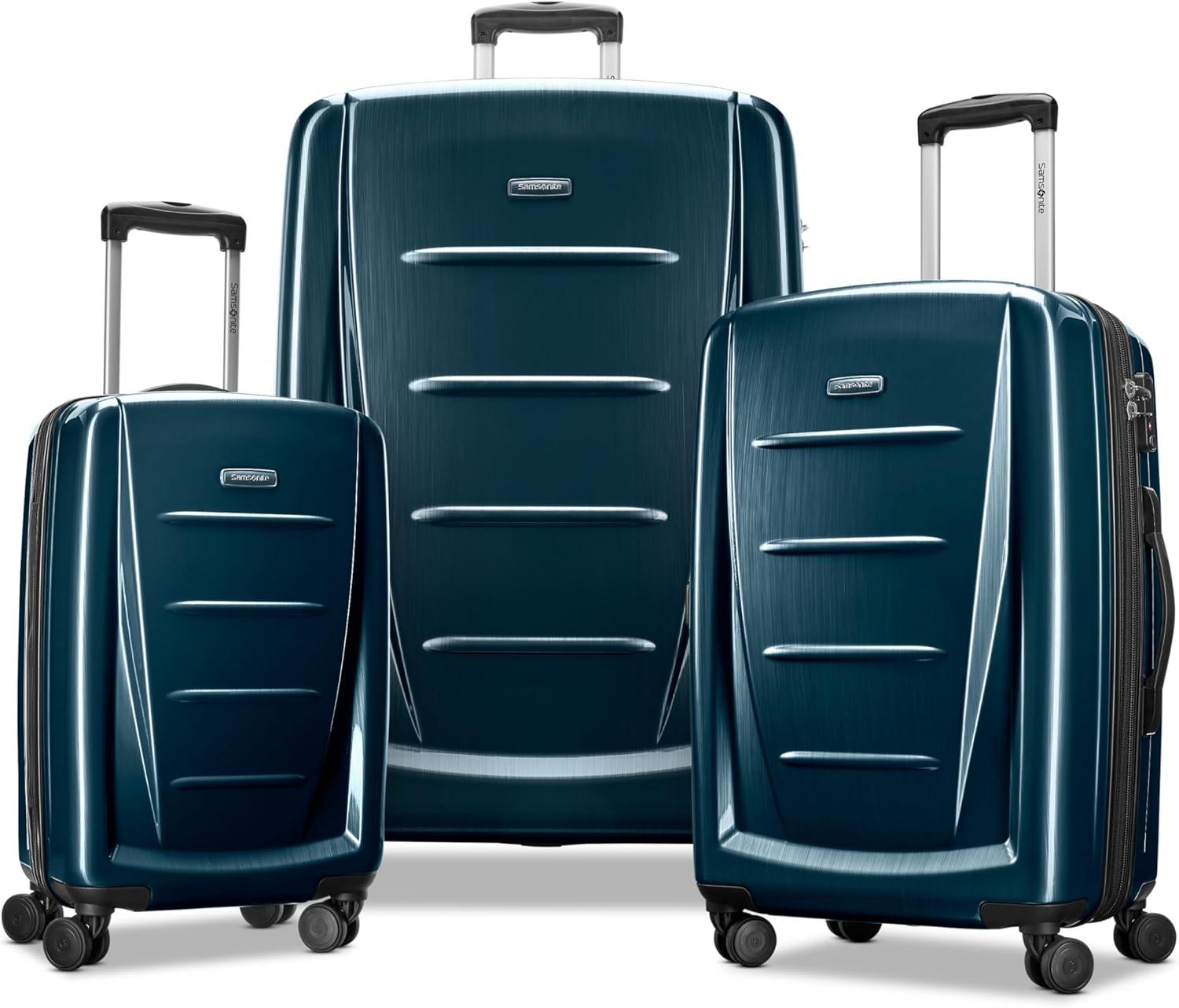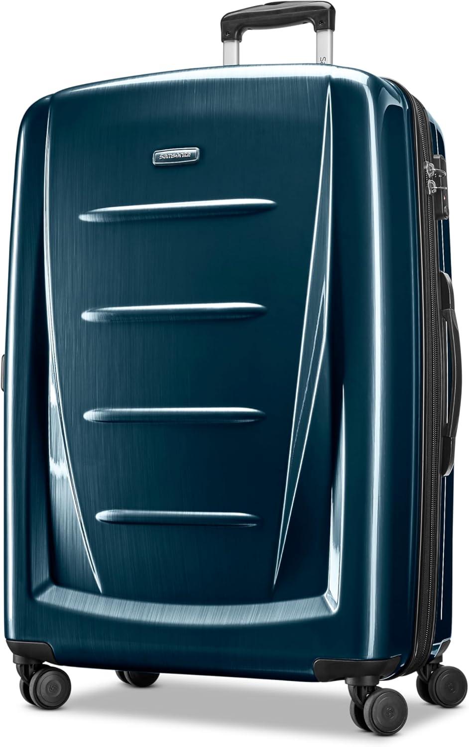 Samsonite Winfield 2 Hardside Expandable Luggage with Spinner Wheels, Checked-Large 28-Inch, Brushed White(Teal)
